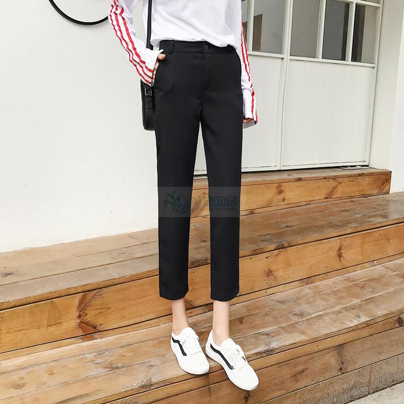 黑色裤子女高腰春秋宽松韩版直筒休闲裤九分小脚哈伦裤烟管裤西裤