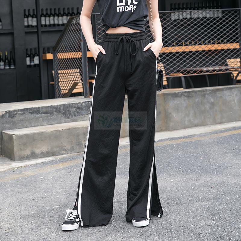 垂感阔腿裤女侧开叉宽松薄款直筒拖地裤女高腰校服裤ins超火裤...