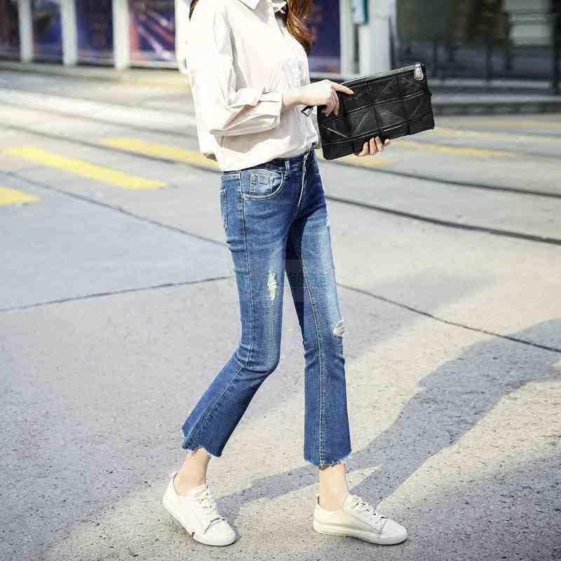 微喇牛仔裤女2018春秋新款韩版高腰显瘦ins超火的裤子九分...