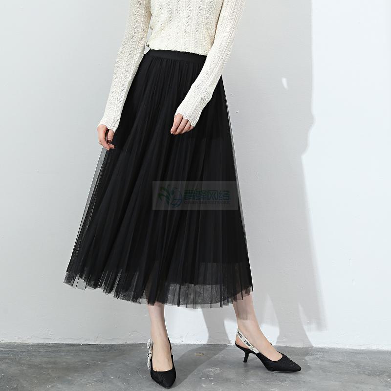 网纱半身裙女2018春夏新款长裙长款A字裙半裙百褶裙裙子半身...