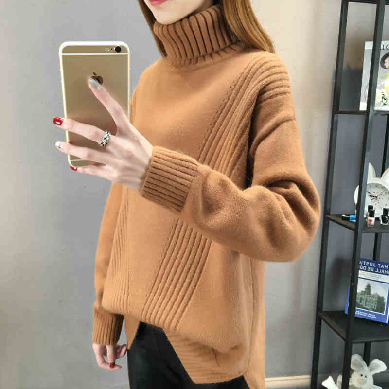 秋冬新款宽松高领套头毛衣女中长款韩版打底针织衫加厚女装学生潮