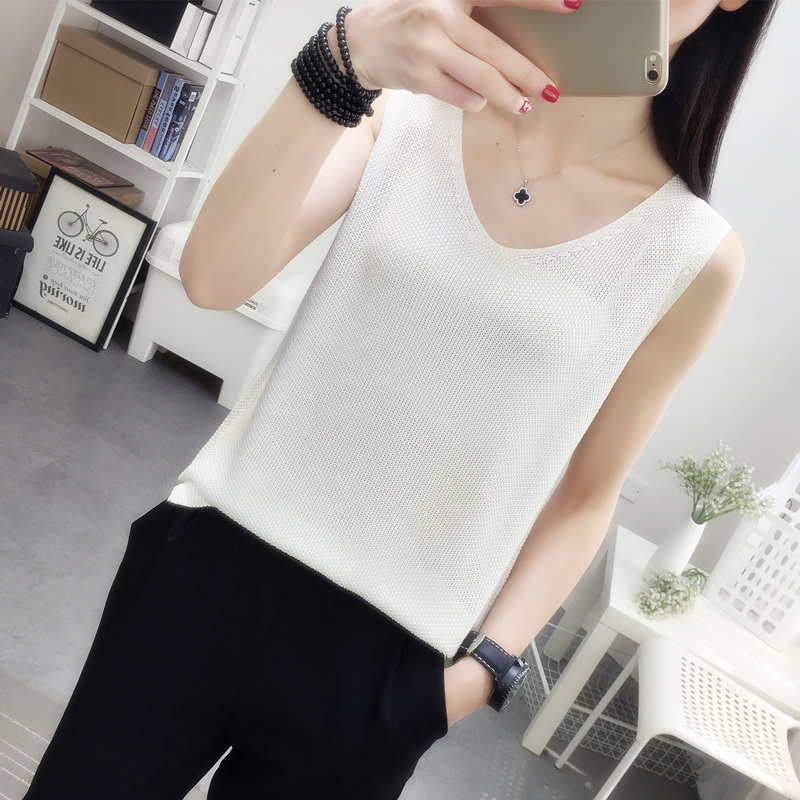 黑白色外穿针织背心女内搭春夏新款宽松棉麻小吊带打底衫无袖上衣
