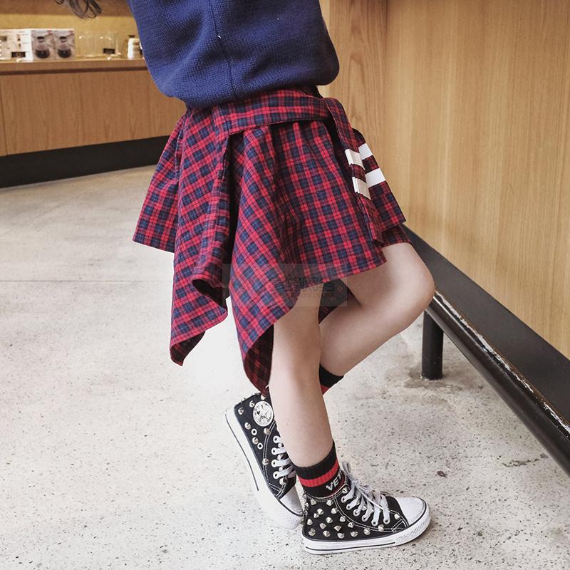 女童半身裙春夏 2018新款韩版童装短裙格子系带字母洋气半身...