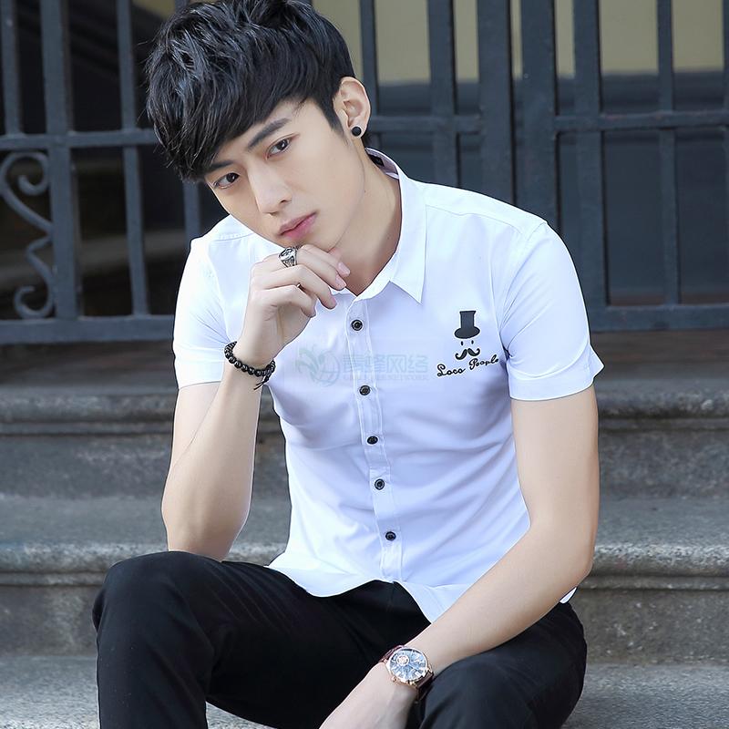 2018夏新款男装韩版短袖衬衫男士青少年修身休闲时尚百搭衬衫